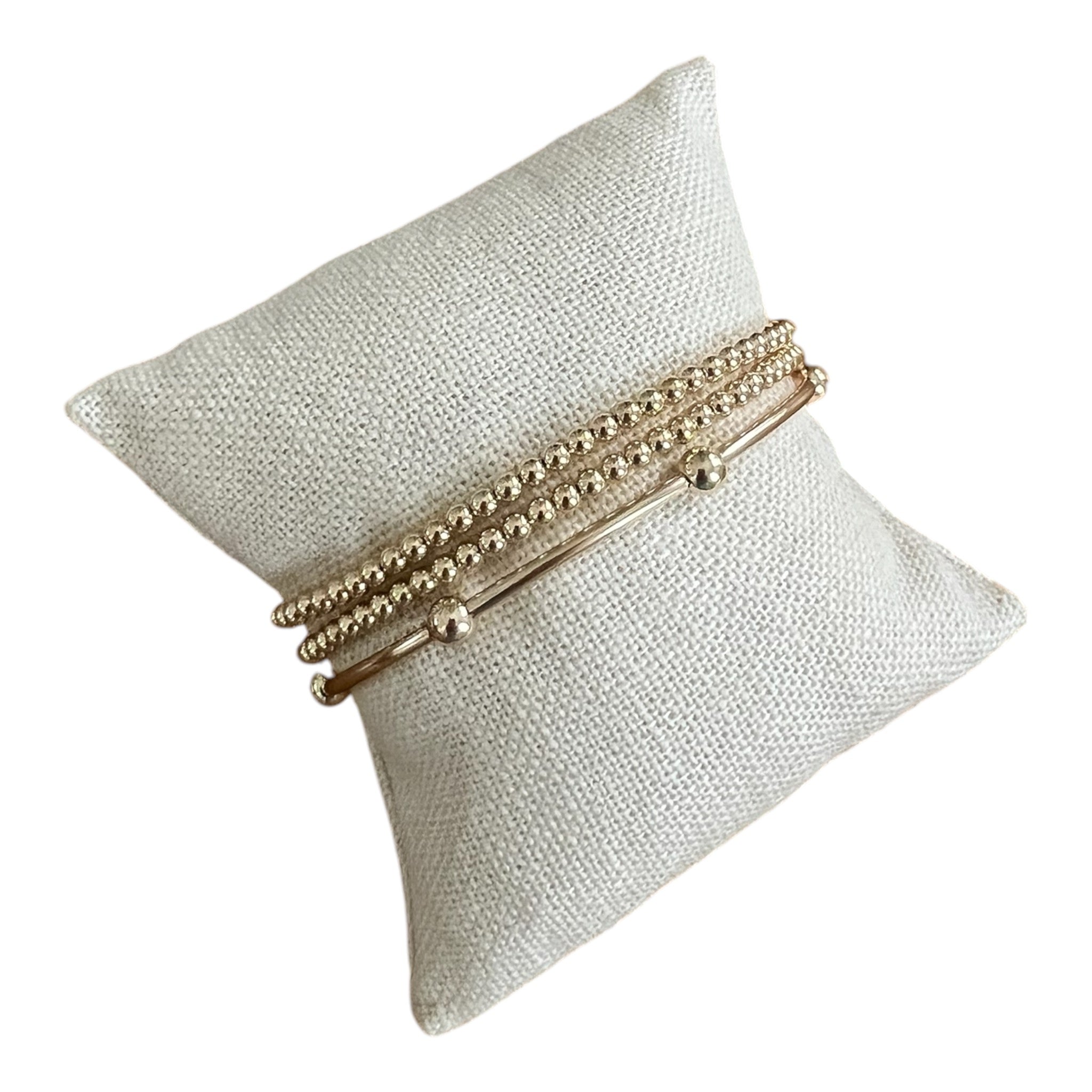 All Pansy Day bracelets are strung on a 7 inch elastic band and feature a signature turquoise bead near the clasp.