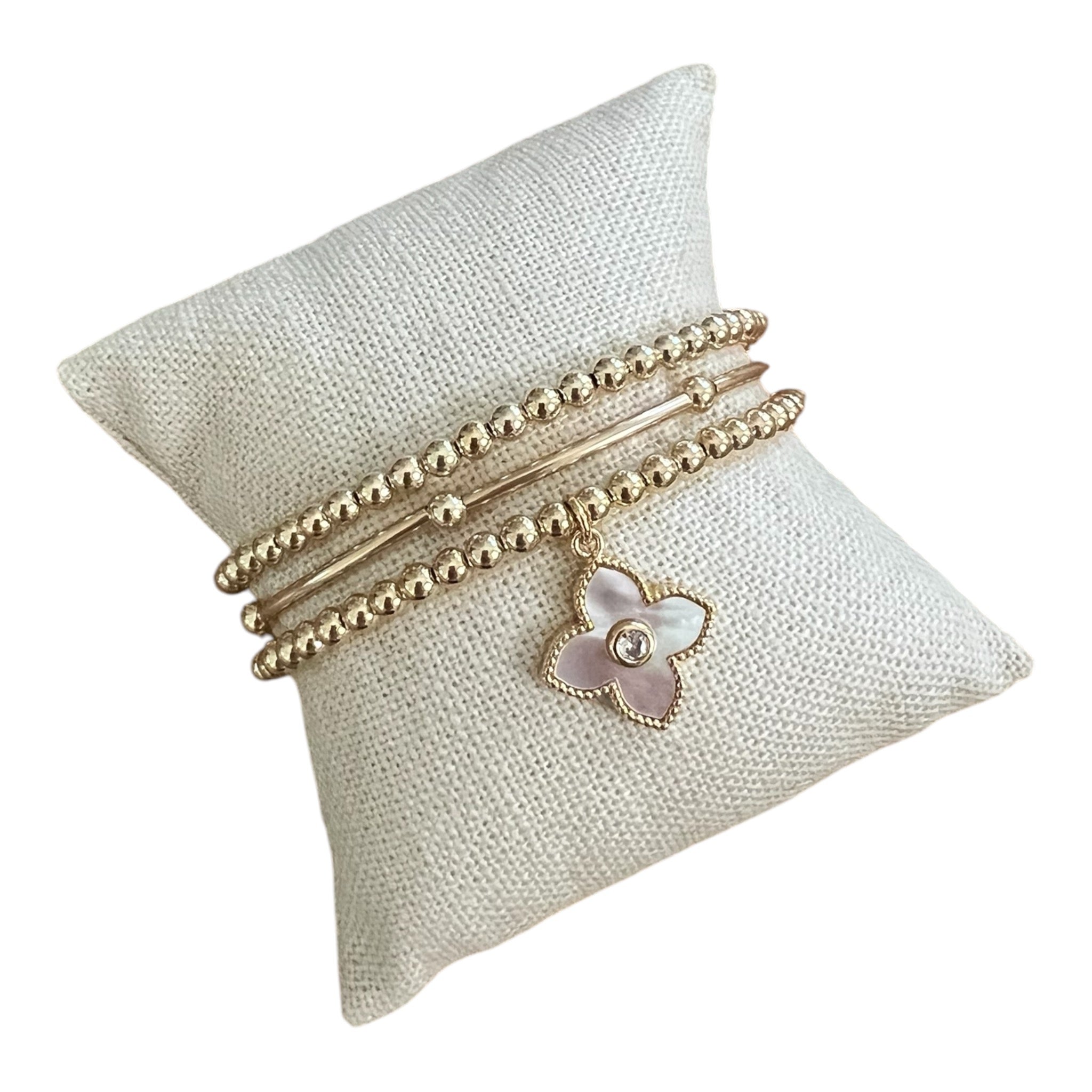 All Pansy Day bracelets are strung on a 7 inch elastic band and feature a signature turquoise bead near the clasp.