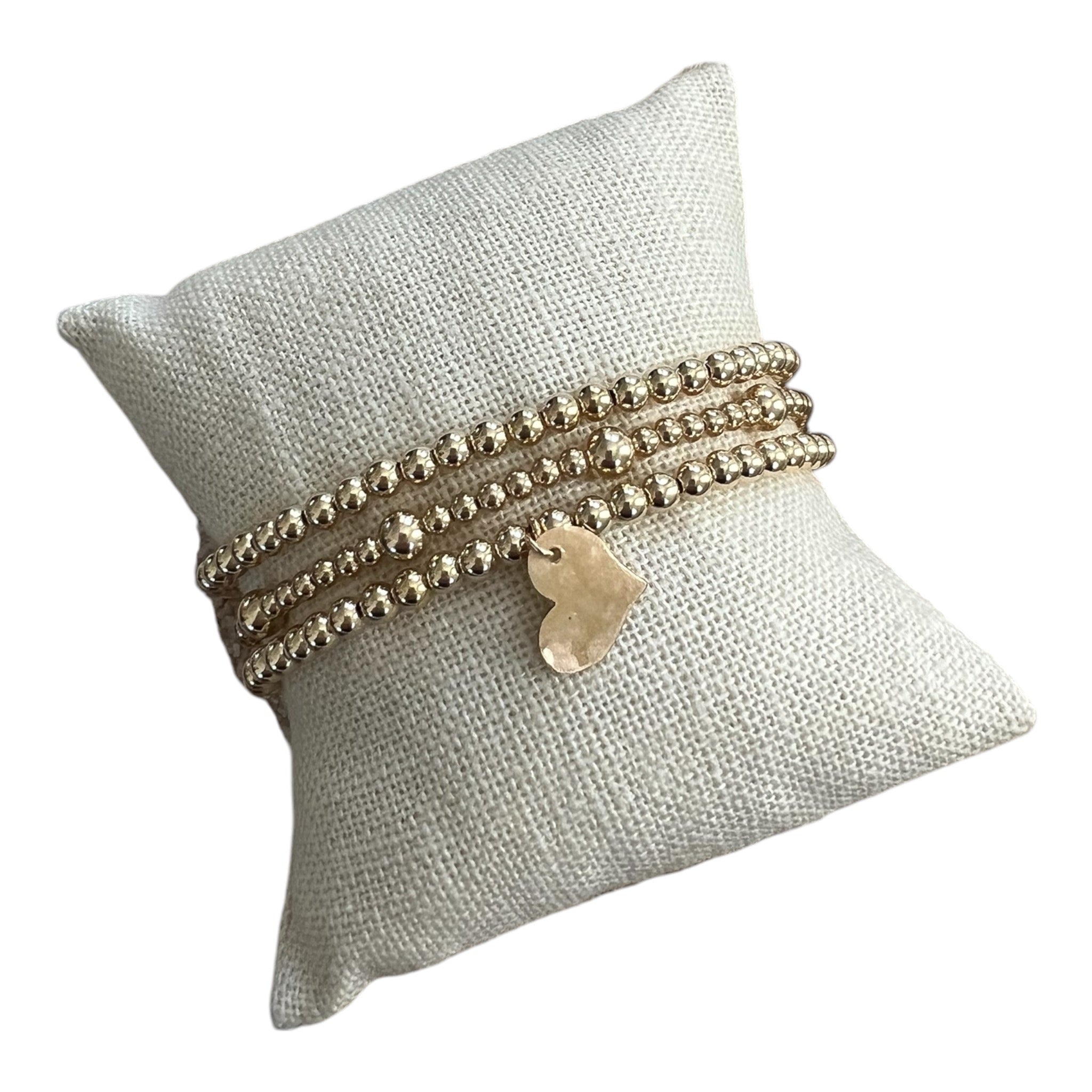 All Pansy Day bracelets are strung on a 7 inch elastic band and feature a signature turquoise bead near the clasp.
